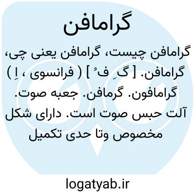( اسم ) آلتی است که صفحه ای را که آوازی در آن ضبط شده بگردش در آورد و همان آواز را بگوش رساند جعب. صوت: آوازیرا که دقیقا تقلیدی بود از یک صفحه که همان صبح چندین بار روی گرامافون گذارده بود بلحن گیرا و نیکو آغاز کرد.