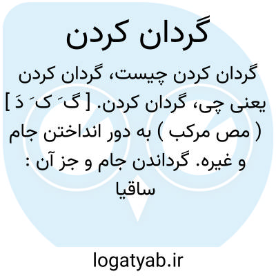 ( مصدر ) ۱ - متحرک کردن براه انداختن ۲ - بدور در آوردن ( جام ساغر و غیره ): ساقیا. پیش آر زود آن آب آتشفام را جام گردان کن ببرغمهای بی انجام را. ( سوزنی )
