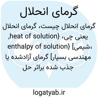 {heat of solution, enthalpy of solution} [شیمی، مهندسی بسپار] گرمای آزادشده یا جذب شده براثر حل شدن کامل یک مول از یک مادۀ معین در حجم زیادی از حلاّل