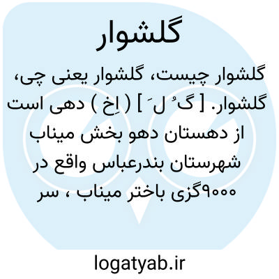 گلشوار. [ گ ُ ل َ ] ( اِخ ) دهی است از دهستان دهو بخش میناب شهرستان بندرعباس واقع در 9000گزی باختر میناب، سر راه فرعی تیاب به میناب. هوای آن گرم و دارای 400 تن سکنه است. آب آن از رودخانه و محصول آن غلات و خرماست. شغل اهالی زراعت و مکاری و راه آن فرعی و مزارع میرآباد و تم نوج جزء این ده است. ( از فرهنگ جغرافیایی ایران ج 8 ).