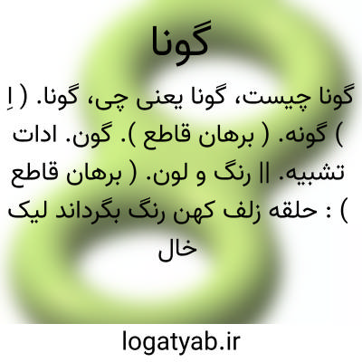 ماهی همه گنج درم خور زرّ گونا داشته.خاقانی.|| ( اِ )گوناب. ( انجمن آرا ). غازه که زنان بر روی مالند و گلگونه گویند. ( برهان قاطع ) ( انجمن آرا ). رجوع به گوناب شود. || طرز. روش. قاعده. قانون. صفت. ( برهان قاطع ).