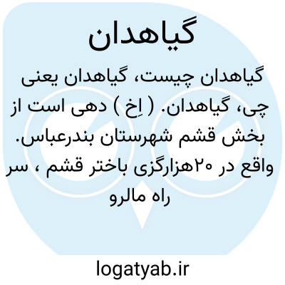 گیاهدان. ( اِخ ) دهی است از بخش قشم شهرستان بندرعباس. واقع در 20هزارگزی باختر قشم، سر راه مالرو باسعید به قشم. محلی جلگه و هوای آن گرمسیر و سکنه آن 100 تن است. آب آن از چاه و باران تأمین میگردد. محصول آن غلات و خرما و شغل اهالی صید ماهی و زراعت است. ( از فرهنگ جغرافیایی ایران ج 8 ).