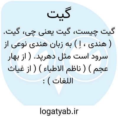 گیت. ( هندی، اِ ) به زبان هندی نوعی از سرود است مثل دهرپد. ( از بهار عجم ) ( ناظم الاطباء ) ( از غیاث اللغات ):