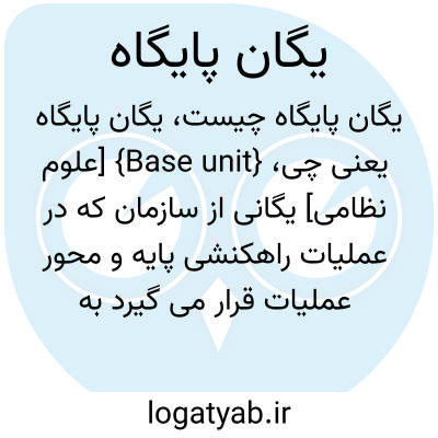{Base unit} [علوم نظامی] یگانی از سازمان که در عملیات راهکنشی پایه و محور عملیات قرار می گیرد به طوری که حرکات و رزمایش یگان با توجه به توانمندی آن طرح ریزی و اجرا می شود