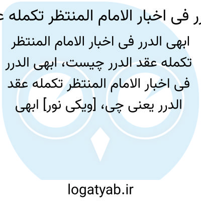 [ویکی نور] ابهى الدرر فی اخبار الامام المنتظر(ع) تکمله عقد الدرر. ابهی الدّررفی اخبار الامام المنتظر(ع) یا تکملة عقد الدّرر به زبان عربی اثر محمدباقر بهاری همدانی(1277-1333ق) می باشد.