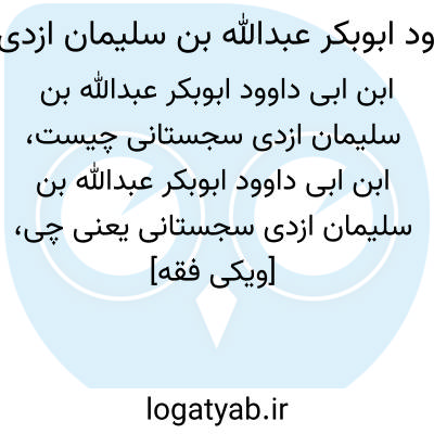 [ویکی فقه] اِبْن ِ اَبى داوود، ابوبکر عبدالله بن سلیمان بن اشعث بن اسحاق ابن بشیربن شداد بن عمرو (یحیى ) بن عمران ازدی سجستانى (۲۳۰- ۳۱۶ق /۸۴۴ - ۹۲۸م )، قاری، فقیه و از حافظان بنام حدیث بوده است.