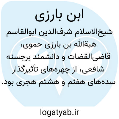 [ویکی فقه] اِبْن ِ بارِزی، ابوالقاسم هبةالله بن عبدالرحیم بن ابراهیم بن هبةالله بن بارزی جهنی حموی ملقب به شیخ الاسلام و شرف الدین (۶۴۵ - ۷۳۸ق /۱۲۴۷- ۱۳۳۷م )، قاضی القضاة و دانشمند شافعی است.