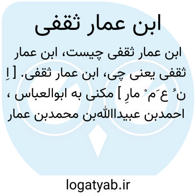 ابن عمار ثقفی. [ اِ ن ُ ع َم ْ مارِ ] مکنی به ابوالعباس، احمدبن عبیداﷲبن محمدبن عمار ثقفی کاتب. او با ابوعبداﷲ محمدبن جراح مصاحبت داشته و از وی روایت کرده. وفات او به سال 319 هَ.ق. بوده است. از کتب اوست: کتاب المبیضه فی اخبار مقاتل آل ابیطالب. کتاب الانواء. کتاب مثالب ابی فراش. کتاب اخبار سلیمان بن ابی شیخ. کتاب الزیادات فی اخبار الوزراء.کتاب اخبار حجربن عدی. کتاب رسالته فی بنی امیه. کتاب اخبار ابی نواس. کتاب اخبار ابن الرومی و الاختیارات من شعره. کتاب رسالته فی تفضیل بنی هاشم و اولیائهم وذم بنی امیه و اتباعهم. کتاب رسالته فی امر ابن المحرز المحدث. کتاب اخبار ابی العتاهیه. کتاب المناقضات. کتاب اخبار عبداﷲبن معاویةبن جعفر. ( از ابن الندیم ).