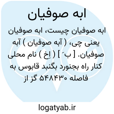 ( آبه صوفیان ) آبه صوفیان. [ ب َ ] ( اِخ ) نام محلی کنار راه بجنورد بگنبد قابوس به فاصله 548430 گز از مشهد.