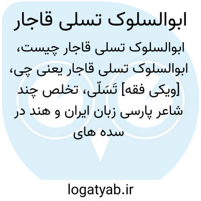[ویکی فقه] تَسَلّی، تخلص چند شاعر پارسی زبان ایران و هند در سده های ۱۱-۱۳ق/۱۷-۱۹م است. ابوالسلوک تسلی قاجار یکی از شعرایی است که به تسلی تخلص یافته است.