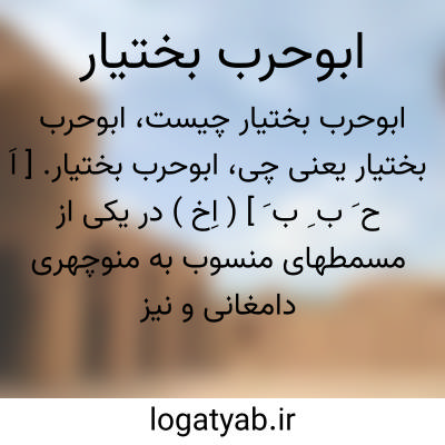 ابوحرب بختیار. [ اَ ح َ ب ِ ب َ ] ( اِخ ) در یکی از مسمطهای منسوب به منوچهری دامغانی و نیز در قصیده ای منتسب بوی که ذوق سلیم مانند چند مسمط و قصیده دیگر ازانتساب آن به منوچهری ابا دارد ابوحرب بختیار محمد نامی ممدوح شاعر است و این شاعر و هم ممدوح بر نگارنده مجهول است. و شاید ممدوح محمد بختیار خلج باشد: