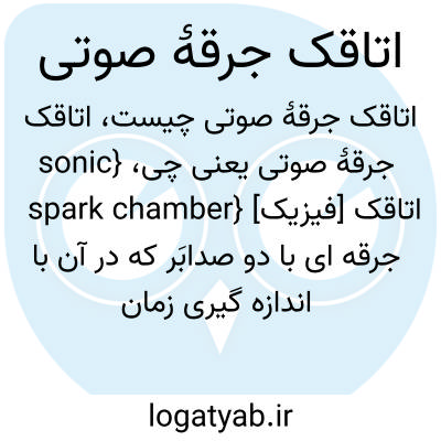 {sonic spark chamber} [فیزیک] اتاقک جرقه ای با دو صدابَر که در آن با اندازه گیری زمان دریافت صدا، محل تولید جرقه شناسایی میشود