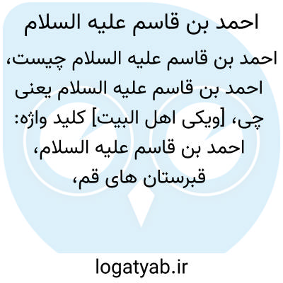 [ویکی اهل البیت] کلید واژه: احمد بن قاسم علیه السلام، قبرستان های قم، زندگینامه احمد بن قاسم علیه السلام، بارگاه امامزاده احمد بن قاسم،