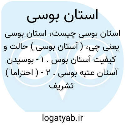 ( آستان بوسی ) حالت و کیفیت آستان بوس. ۱ - بوسیدن آستان عتبه بوسی. ۲ - ( احتراما ) تشریف بخدمت بزرگی رسیدن.