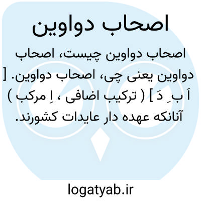 اصحاب دواوین. [ اَ ب ِ دَ ] ( ترکیب اضافی، اِ مرکب ) آنانکه عهده دار عایدات کشورند. سرکاران و ناظران خزانه و مالیه دولت. مستوفیان. وزرای دارایی در تداول امروزی.صاحبدیوانان. رؤسای دفاتر محاسباتی: بمدد اصحاب دواوین و مستخرجان معاملات وصیت کرد. ( ترجمه تاریخ یمینی ص 364 ). و رجوع به اصحاب دیوان و صاحبدیوان شود.