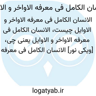 [ویکی نور] الانسان الکامل فی معرفه الاواخر و الاوایل (جیلی). الانسان الکامل فی معرفة الاواخر و الاوائل، به زبان عربی، اثر عبدالکریم جیلی، درباره یکی از مسائل مهم و پرجاذبه عرفان نظری؛ یعنی انسان کامل است.