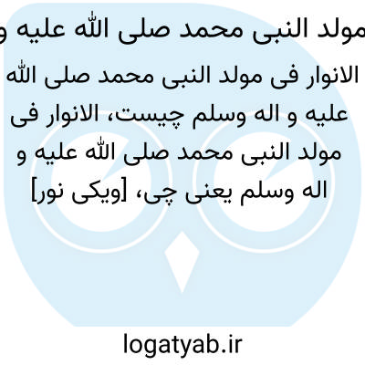 [ویکی نور] الانوار فی مولد النبی محمد صلی الله علیه و آله وسلم. الأنوار فی مولد النبی محمد(ص) اثر ابو الحسن، احمد بن عبد الله بکری مصری، از بزرگان قرن هفتم هجری است که در موضوع زندگینامه پیامبر اکرم(ص) می باشد.