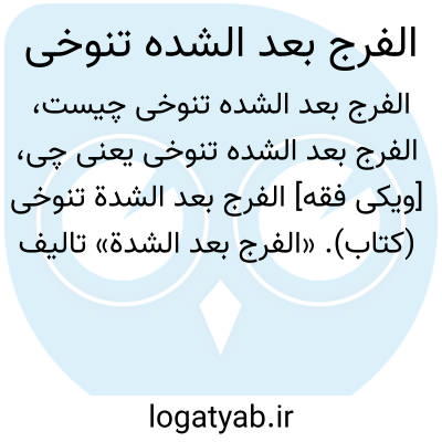 [ویکی فقه] الفرج بعد الشدة تنوخی (کتاب). «الفرج بعد الشدة» تالیف قاضی ابو علی محسن بن علی تنوخی (۳۲۷- ۳۸۴ ق) به زبان عربی نگاشته است.