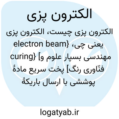 {electron beam curing} [مهندسی بسپار علوم و فنّاورى رنگ] پخت سریع مادۀ پوششی با ارسال باریکۀ الکترون به سطح ماده و تشکیل رادیکال های آزاد و انجام واکنش بسپارش زنجیری