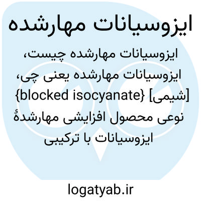 {blocked isocyanate} [شیمی] نوعی محصول افزایشی مهارشدۀ ایزوسیانات با ترکیبی شامل یک اتم هیدروژن فعال مانند فنول که تنها در دماهای بالا می تواند با پُلی اُل واکنش دهد و پُلی یورتان تولید کند