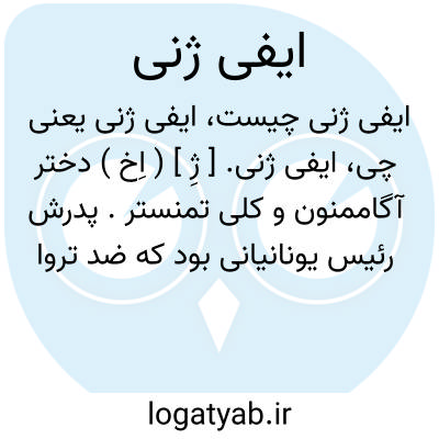 ایفی ژنی. [ ژِ ] ( اِخ ) دختر آگاممنون و کلی تمنستر. پدرش رئیس یونانیانی بود که ضد تروا متحد شده بودند، او را در راه آرتمیس قربانی کرد، تا بتواند حمایت خدایانی را که بوسیله بادهای مخالف جهازات یونانی را در اولید متوقف کرده بودند، جلب نماید. طبق روایت دیگر ربةالنوع مذکور بجای ایفی ژنی غزالی ماده را فرستاد و ایفی ژنی را کاهنه معبد خود در تورید ( کریمه کنونی ) ساخت. کاهن بزرگ تورید مصمم شد که ایفی ژنی را دوباره قربانی کند ولی برادرش او را نجات داد. اوریپیدس یکی از شعرای یونان دو داستان حزن آور در شرح حال ایفی ژنی نوشته است. ( فرهنگ فارسی معین ). رجوع به ذیل تمدن قدیم تعلیقات نصراﷲ فلسفی شود.