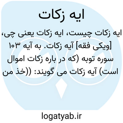 [ویکی فقه] آیه زکات. به آیه ۱۰۳ سوره توبه (که در باره زکات اموال است) آیه زکات می گویند: ((خذ من اموالهم صدقة تطهرهم وتزکیهم بها وصل علیهم ان صلاتک سکن لهم والله سمیع علیم)؛ ) از اموال آنان صدقه ای بگیر تا به وسیله آن پاک و پاکیزه شان سازی و برایشان دعا کن زیرا دعای تو برای آنان آرامشی است و خدا شنوای داناست.