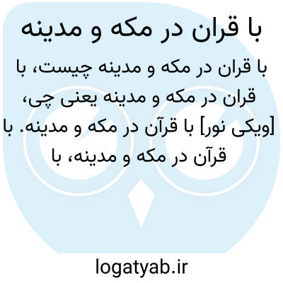 [ویکی نور] با قرآن در مکه و مدینه. با قرآن در مکه و مدینه، با نام کامل «درس نامه با قرآن در مکه و مدینه»، به کوشش اکبر دهقان و تدوین حوزه نمایندگی ولی فقیه در امور حج و زیارت، از سوی مؤسسه فرهنگی - هنری مشعر منتشر شده است.