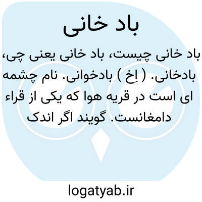 بادخانی. ( اِخ ) بادخوانی. نام چشمه ای است در قریه هوا که یکی از قراء دامغانست. گویند اگر اندک چیزی مردار در آن چشمه افتد باد و طوفان بمرتبه ای شود که آدم را ببرد و اسب را بیندازد. ( برهان ). رجوع به آنندراج و انجمن آرا شود. نام چشمه ای است که در یکی از قرای دامغان بود و نام آن قریه هوا باشد و اگر زن حایضه لته نجس خود را در آن چشمه افکند باد طوفان تند بهم رسد چندانکه اسب و آدم را رباید. شیخ آذری در کتاب غریب الدنیا و عجایب العلیا نظم کرده:
