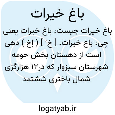 باغ خیرات. [ خ َ ] ( اِخ ) دهی است از دهستان بخش حومه شهرستان سبزوار که در12 هزارگزی شمال باختری ششتمد بر سر راه مالرو عمومی استاج واقع است. ناحیه ای است کوهستانی دارای آب و هوای معتدل و 468 تن سکنه و آب آن از قنات تأمین میشود. محصول عمده آن غلات و میوه و شغل مردمش زراعت وراهش مالرو است. ( از فرهنگ جغرافیایی ایران ج 9 ).