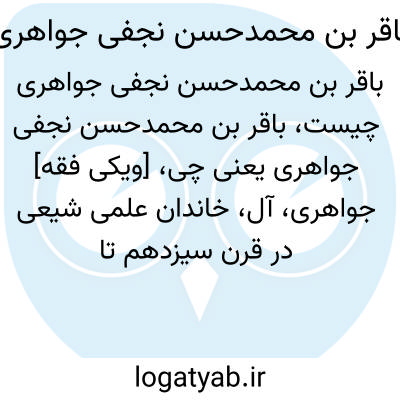 [ویکی فقه] جواهری، آل، خاندان علمی شیعی در قرن سیزدهم تا پانزدهم در عراق است. یکی از شخصیت های این خاندان، باقر بن محمدحسن نجفی جواهری است.