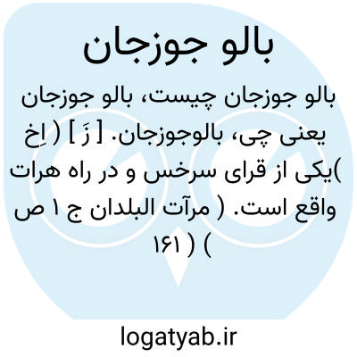 بالوجوزجان. [ زَ ] ( اِخ )یکی از قرای سرخس و در راه هرات واقع است. ( مرآت البلدان ج 1 ص 161 ) ( از معجم البلدان ) ( مراصد الاطلاع ).