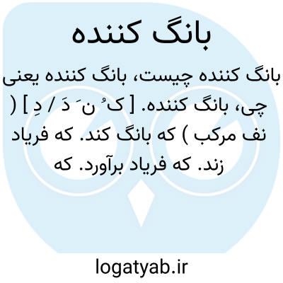 بانگ کننده. [ ک ُ ن َ دَ / دِ ] ( نف مرکب ) که بانگ کند. که فریاد زند. که فریاد برآورد. که آوا برآورد. صارخة. عجاج. ( دهار ). مضوضی. ( منتهی الارب ).