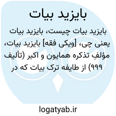 [ویکی فقه] بایزید بیات، مؤلفِ تذکره همایون و اکبر (تألیف ۹۹۹) از طایفه ترک بیات که در آذربایجان و ایروان و تهران و فارس و نیشابور پراکنده اند.