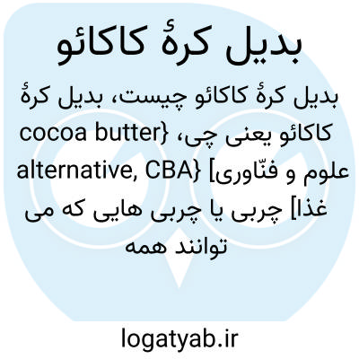 {cocoa butter alternative, CBA} [علوم و فنّاوری غذا] چربی یا چربی هایی که می توانند همه یا بخشی از خواص کرۀ کاکائو را داشته باشند