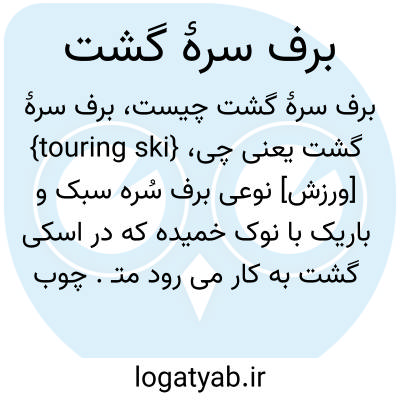 {touring ski} [ورزش] نوعی برف سُره سبک و باریک با نوک خمیده که در اسکی گشت به کار می رود متـ. چوب اسکی گشت