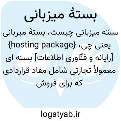 {hosting package} [رایانه و فنّاوری اطلاعات] بسته ای معمولاً تجارتی شامل مفاد قراردادی که برای فروش یا اجارۀ فضایی از سامانه ای رایانه ای ارائه می شود تا کاربر بتواند با خرید یا اجاره کردن هریک از آنها داده هایی را به عنوان منبع اطلاعات در آن سامانه قرار دهد و از محلی...