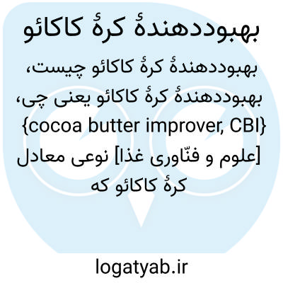 {cocoa butter improver, CBI} [علوم و فنّاوری غذا] نوعی معادل کرۀ کاکائو که مقدار زیـادی تـری گلیسرید جـامد دارد و از آن بـرای بهبود کرۀ کاکائوی نرم استفاده می کنند