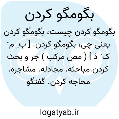 بگومگو کردن. [ ب ِ م َ ک َ دَ ] ( مص مرکب ) جر و بحث کردن.مباحثه. مجادله. مشاجره. محاجه کردن. گفتگو کردن.