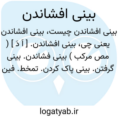 بینی افشاندن. [ اَ دَ ] ( مص مرکب ) بینی فشاندن. بینی گرفتن. بینی پاک کردن. تمخط. فین کردن. ( منتهی الارب ). امتخاط. انخاط و نخط. ( منتهی الارب ).