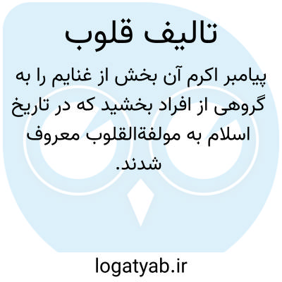 [ویکی شیعه] تألیف قلوب حمایت اقتصادی پیامبر، امام یا حاکم اسلامی از کفار، منافقان یا مسلمانان متزلزل به منظور همراهی آنان با اسلام و دفاع از آن است. کسانی که به این منظور مورد حمایت قرار می گیرند، «الْمُؤَلَّفَةُ قُلُوبُهُمْ» یا «مُؤَلَّفَةُ القُلُوب» نامیده می شوند. قرآن یکی از موارد مصرف زکات را تألیف قلوب بیان کرده است. فقهای شیعه معتقد به بقای این حکم فقهی و عدم نسخ آن در دوران غیبت هستند.