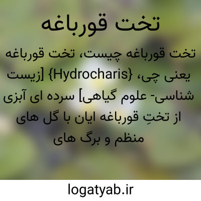 {Hydrocharis} [زیست شناسی- علوم گیاهی] سرده ای آبزی از تختِ قورباغه ایان با گل های منظم و برگ های قلبی شکلِ شناور بر سطح آب که گل های آن دارای سه کاسبرگ و سه گلبرگ و یک تا سه پرچم یا بیشتر و یک مادگی تک حجره ای تحتانی است