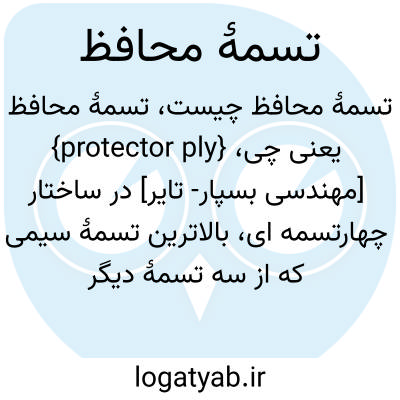{protector ply} [مهندسی بسپار- تایر] در ساختار چهارتسمه ای، بالاترین تسمۀ سیمی که از سه تسمۀ دیگر محافظت می کند