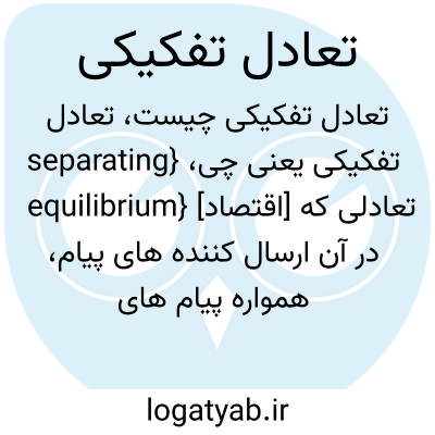 {separating equilibrium} [اقتصاد] تعادلی که در آن ارسال کننده های پیام، همواره پیام های متفاوتی انتخاب می کنند
