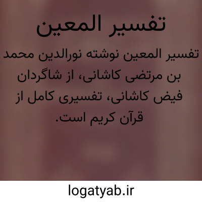 تفسیر المعین نوشته نورالدین محمد بن مرتضی کاشانی، از شاگردان فیض کاشانی، تفسیری کامل از قرآن کریم است که با هدف کمک به فهم لغات و معانی آیات برای قرّاء در هنگام تلاوت تدوین شده است. این اثر به جای مراجعه مستقیم به تفسیرهای مفصل و گسترده، خلاصه و کاربردی است و تمرکز اصلی آن بر تبیین مفاهیم قرآنی با استناد به احادیث و روایات اهل بیت(ع) میباشد.