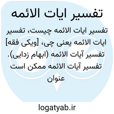 [ویکی فقه] تفسیر آیات الائمه (ابهام زدایی). تفسیر آیات الائمه ممکن است عنوان برای کتاب های ذیل باشد: • تفسیر آیات الائمه (حکیم)، اثـر میرزا علی نقی (م ۱۲۹۷ ق) فرزند مولی رضا بن محمدامین همدانی حکیم، ریاضی دان، متبحر در علوم غریبه و از علمای عصر خویش• تفسیر آیات الائمه (لاریجانی)، اثر سیدمحمدعلی (م ۱۳۲۱ ق) فرزند سیدمهدی حسینی تهرانی لاریجانی نیاکی معروف به تیر فروش، حکیم متاله، از علمای تهران