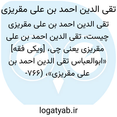 [ویکی فقه] «ابوالعباس تقی الدین احمد بن علی مقریزی»، (۷۶۶- ۸۴۵ ق)، از نامورترین مورخان تاریخ مصر، در سده های هشتم و نهم هجری است.