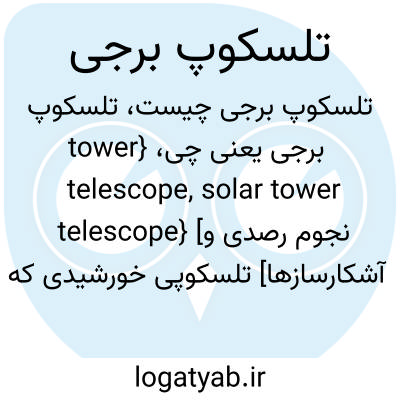 {tower telescope, solar tower telescope} [نجوم رصدی و آشکارسازها] تلسکوپی خورشیدی که در انتهای برج خورشید قرار دارد