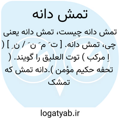 تمش دانه. [ ت َ م َ ن َ / ن ِ ] ( اِ مرکب ) توت العلیق را گویند. ( تحفه حکیم مؤمن ).دانه تمش که تمشک باشد. رجوع به تمش و تمشک شود.
