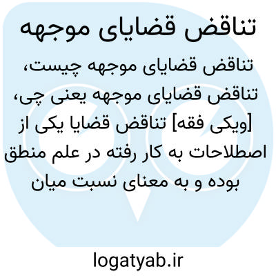 [ویکی فقه] تناقض قضایا یکی از اصطلاحات به کار رفته در علم منطق بوده و به معنای نسبت میان دو قضیه متحد در موضوع و محمول و لواحق آن با اختلاف در کمّ، کیف و جهت است.