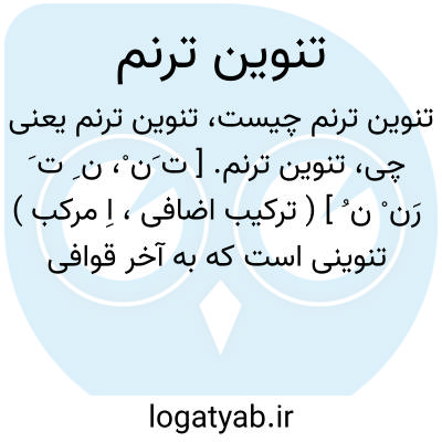 تنوین ترنم. [ ت َن ْ، ن ِ ت َ رَن ْ ن ُ ] ( ترکیب اضافی، اِ مرکب ) تنوینی است که به آخر قوافی دارای حرف اطلاق، بجای آن حرف اطلاق درآید، و حروف اطلاق الف، واو و یاء است که به آخر کلمات درآید. و به عقیده سیبویه هرگاه حروف اطلاق را که موجب ترنم و غناء است از قوافی حذف کنند بجای آن تنوین آرند و با آن ترنم را قطع کنند و این تنوین اختصاص ندارد و به آخر افعال اگر قافیه باشند نیز درآید. ( از کشاف اصطلاحات الفنون ). رجوع به ترنم و تنوین و دیگر ترکیبهای آن شود.